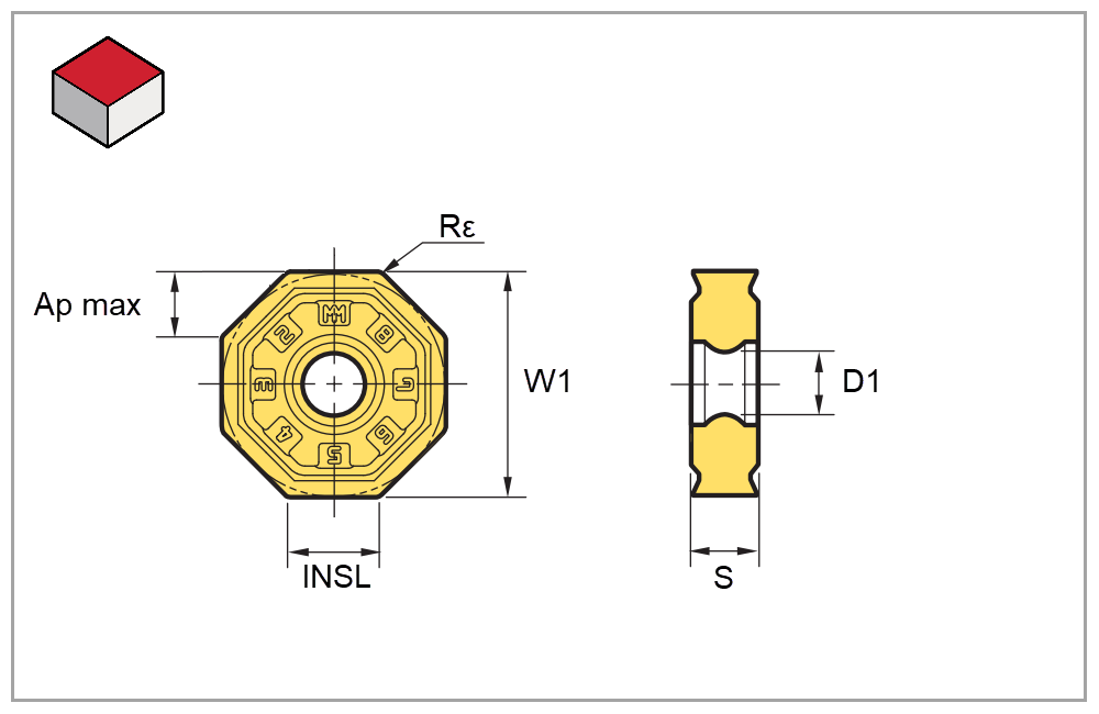 HONP, Вставка для твердосплавної фрези, восьмикутна позитивна, сплав HN25A - Упаковка з 10 штук
