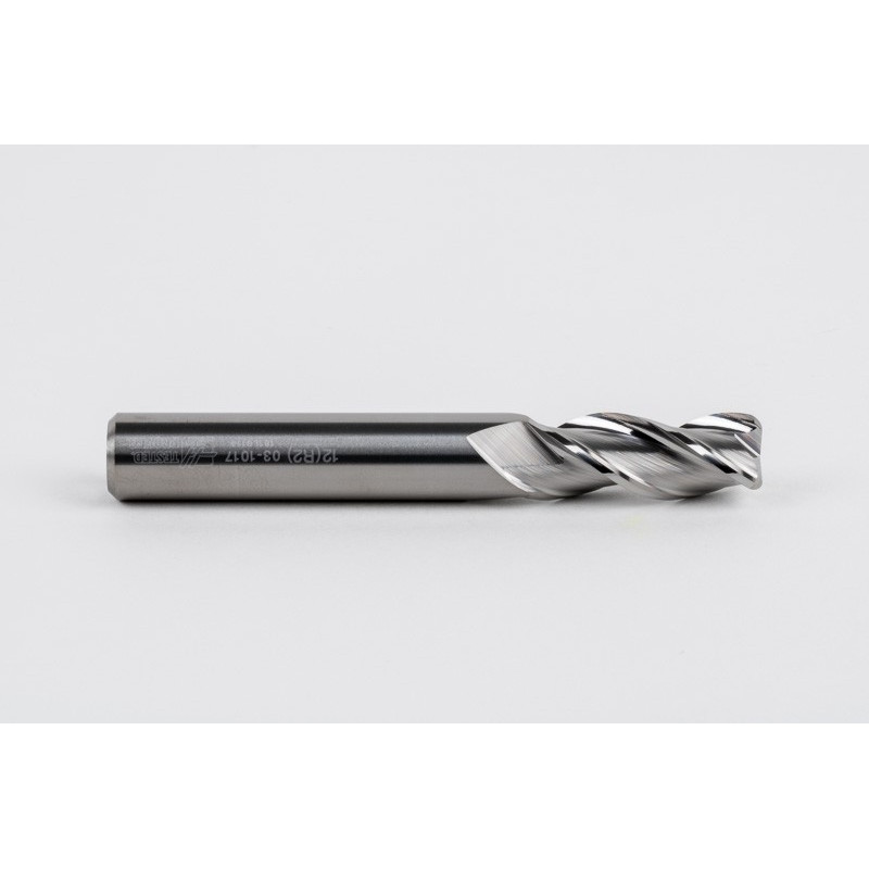 12mm Dia. Carbide End Mill, 3 Flute, Uncoated, 12mm Smooth Shank x 30mm LOC, 2mm Radius, HSAM2