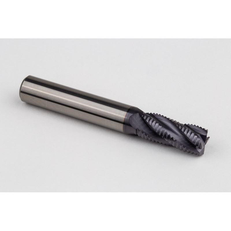 12mm Dia. Carbide Fine Roughing End Mill, 4 Flute, TiAlN Coated, 12mm Smooth Shank x 26mm LOC, 0.55mm Chamfer, FPCHH