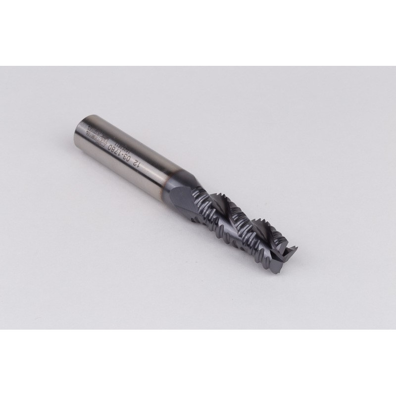 12mm Dia. Cobalt Coarse Roughing End Mill, 3 Flute, TiCN Coated, 12mm Weldon Shank x 32mm LOC, 0.74mm Chamfer, CPRA