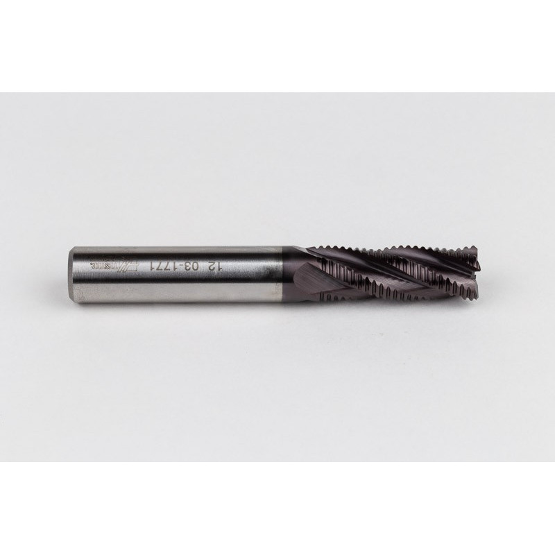 12mm Dia. Cobalt Fine Roughing End Mill, 4 Flute, TiAIN Coated, 12mm Weldon Shank x 32mm LOC, 0.76mm Chamfer, FPR