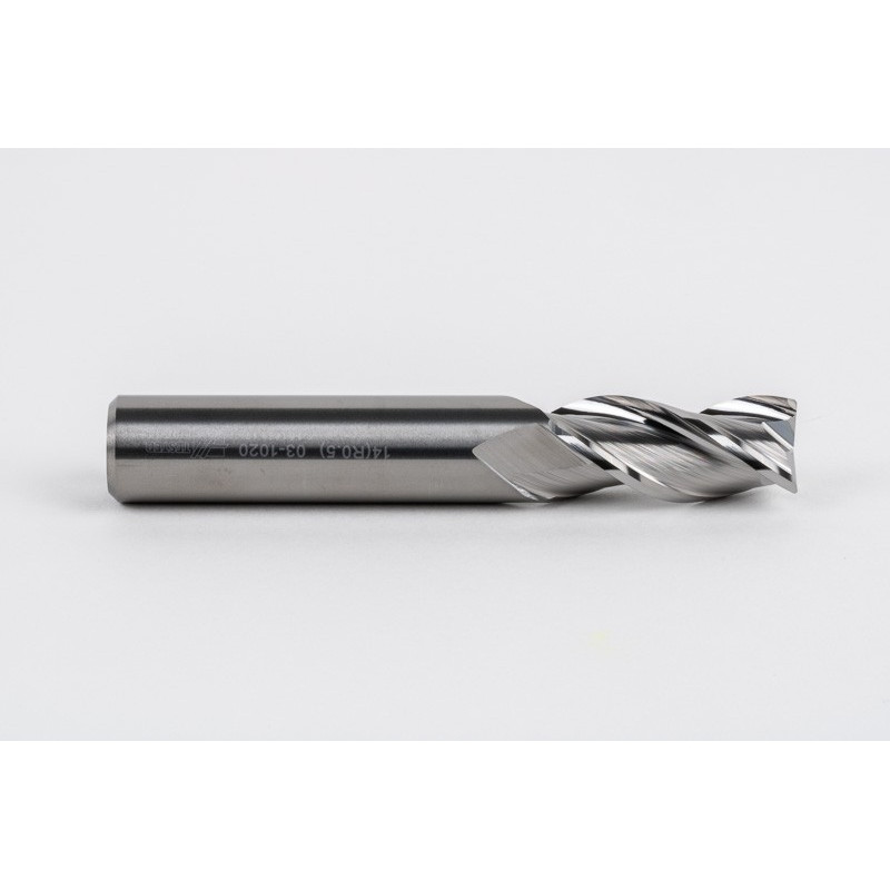 14mm Dia. Carbide End Mill, 3 Flute, Uncoated, 14mm Smooth Shank x 30mm LOC, 0.5mm Radius, HSAM2