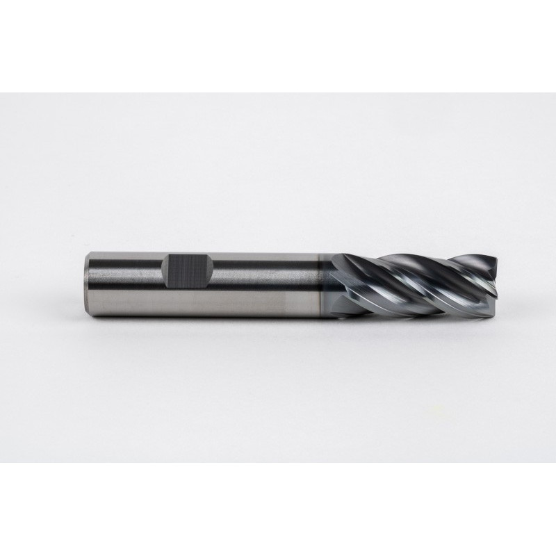 14mm Dia. Carbide End Mill, 4 Flute, Hyb. AlCrN Coated, 14mm Weldon Shank x 30mm LOC, 0.5mm Radius, HTPM