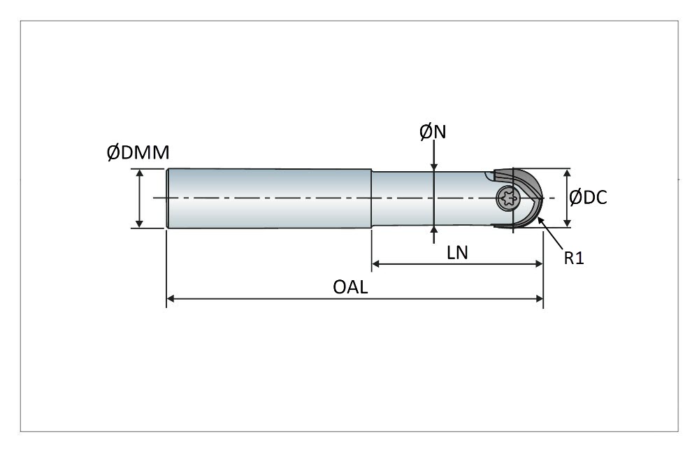 16mm Diameter Indexable Ball End Mill, 16mm Straight Steel Shank x 125mm Overall Length x 65mm Head Length, 1 Insert