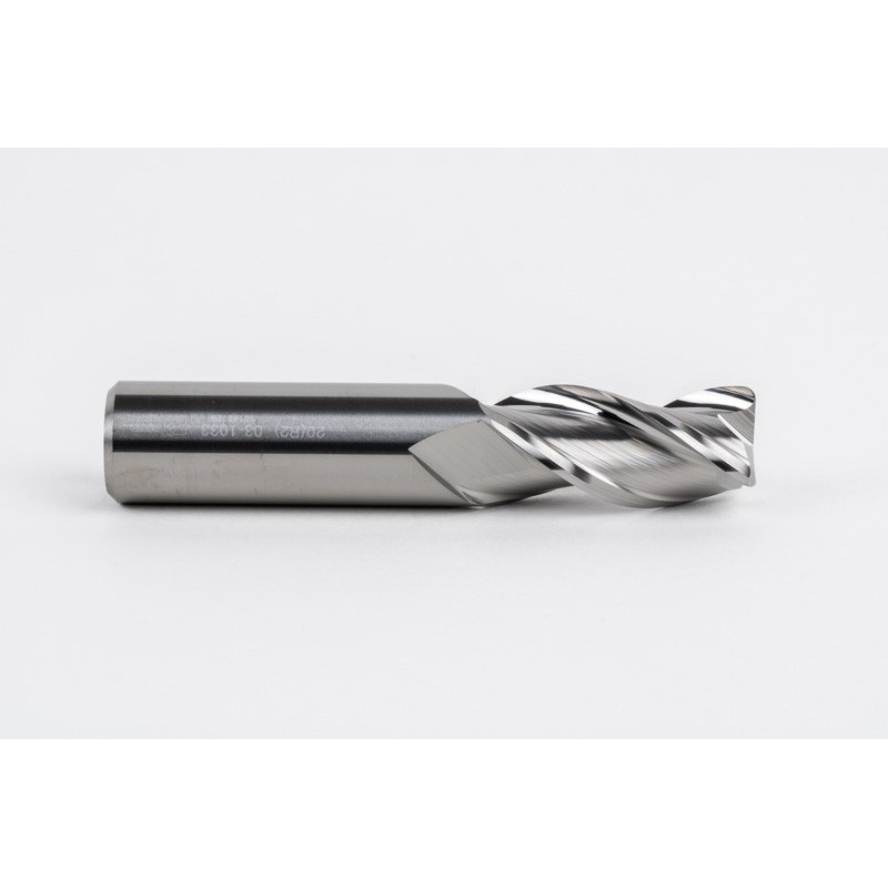 20mm Dia. Carbide End Mill, 3 Flute, Uncoated, 20mm Smooth Shank x 40mm LOC, 2mm Radius, HSAM2