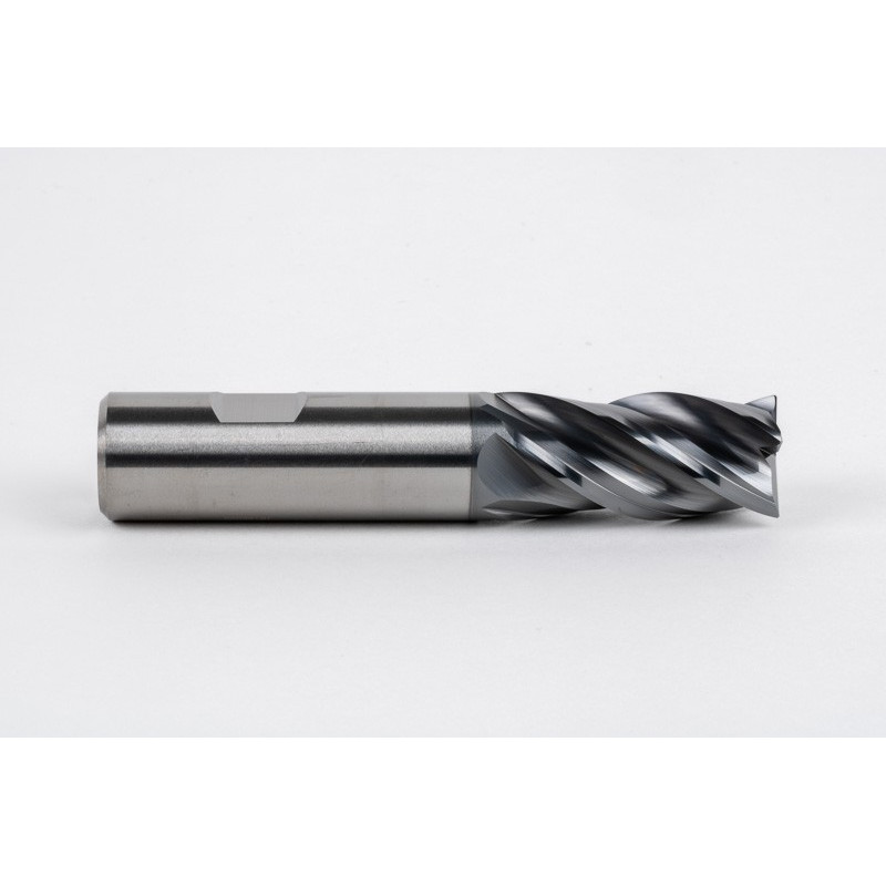 20mm Dia. Carbide End Mill, 4 Flute, Hyb. AlCrN Coated, 20mm Weldon Shank x 40mm LOC, 0.5mm Radius, HTPM