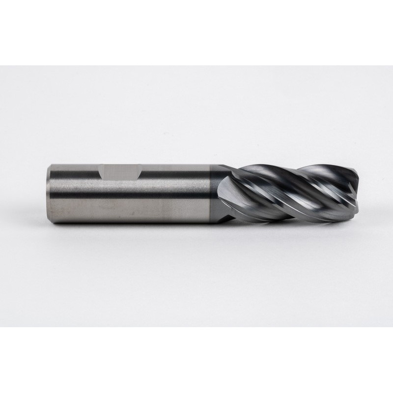 20mm Dia. Carbide End Mill, 4 Flute, Hyb. AlCrN Coated, 20mm Weldon Shank x 40mm LOC, 3mm Radius, HTPM