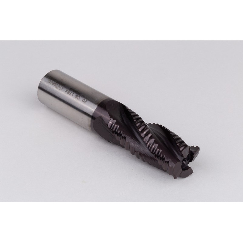 20mm Dia. Cobalt Coarse Roughing End Mill, 4 Flute, TiAIN Coated, 20mm Weldon Shank x 42mm LOC, 0.55mm Chamfer, CPR