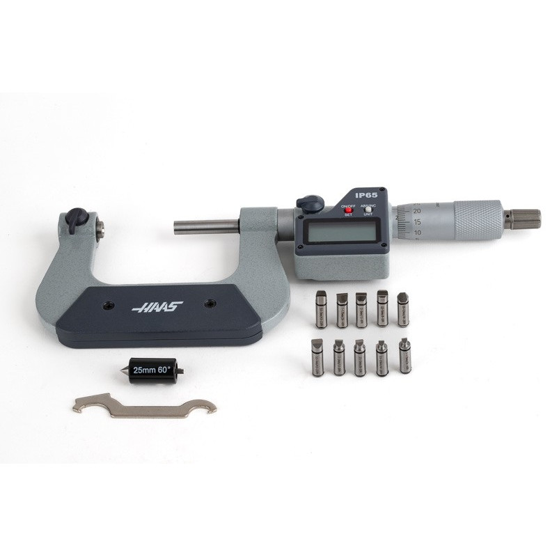 25-50mm (1-2") Digital Screw Thread Micrometer, Rotating Spindle, 0.001mm (0.00005") Resolution, 0.01mm Graduation
