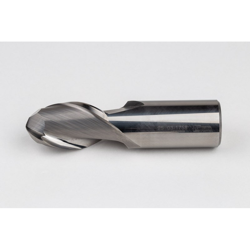 25mm Dia. Carbide Ball End Mill, 2 Flute, Uncoated, 25mm Smooth Shank x 40mm LOC, HSAM1