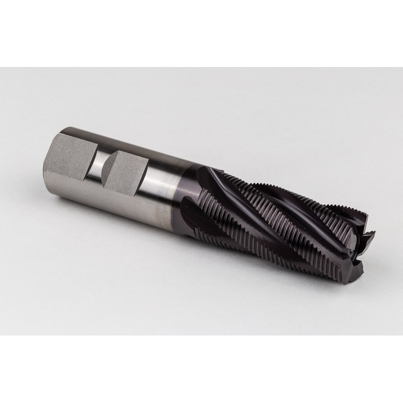 25mm Dia. Cobalt Fine Roughing End Mill, 5 Flute, TiAIN Coated, 25mm Weldon Shank x 52mm LOC, 0.76mm Chamfer, FPR