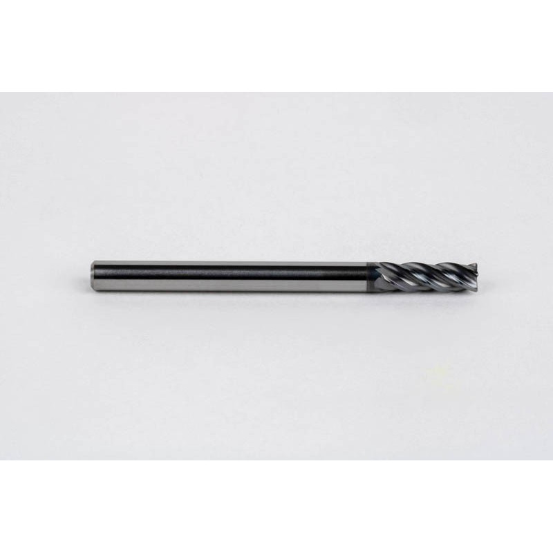 4mm Dia. Carbide End Mill, 4 Flute, Hyb. AlCrN Coated, 4mm Smooth Shank x 12mm LOC, 0.3mm Radius, HTPM