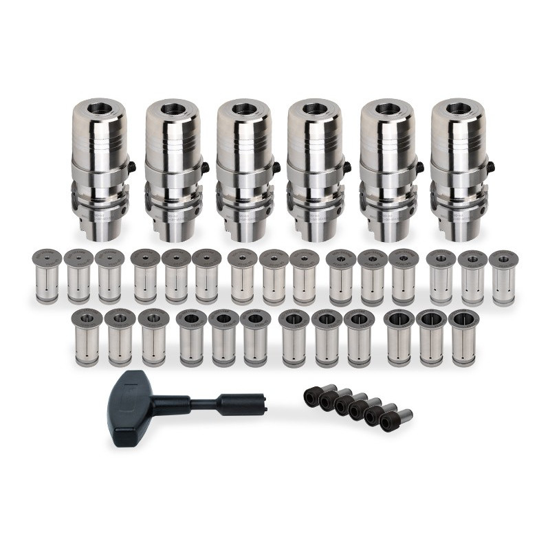 6-Piece, HSK63A Metric Hydraulic Milling Chuck and Collet Kit, TSC