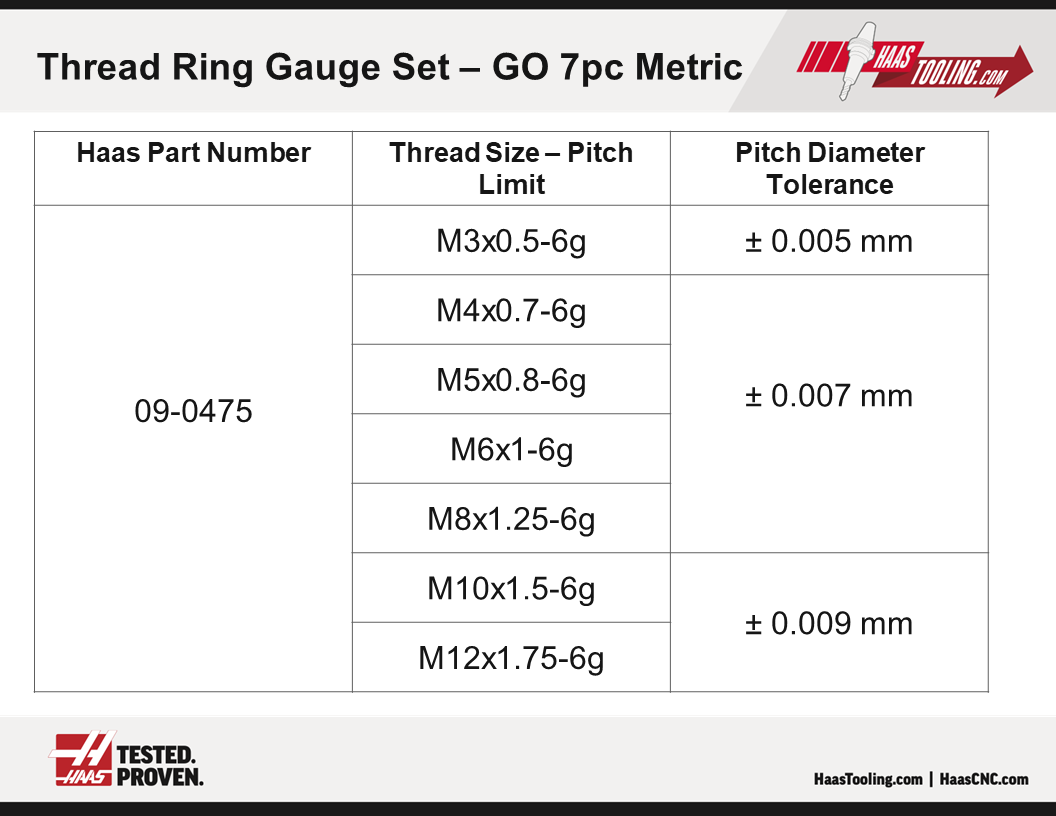 7-Piece, GO Thread Ring Gauge Set, Metric