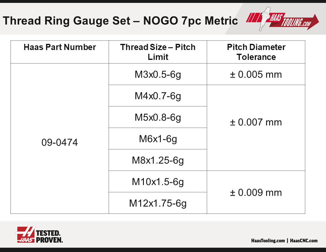 7-Piece, NO-GO Thread Ring Gauge Set, Metric
