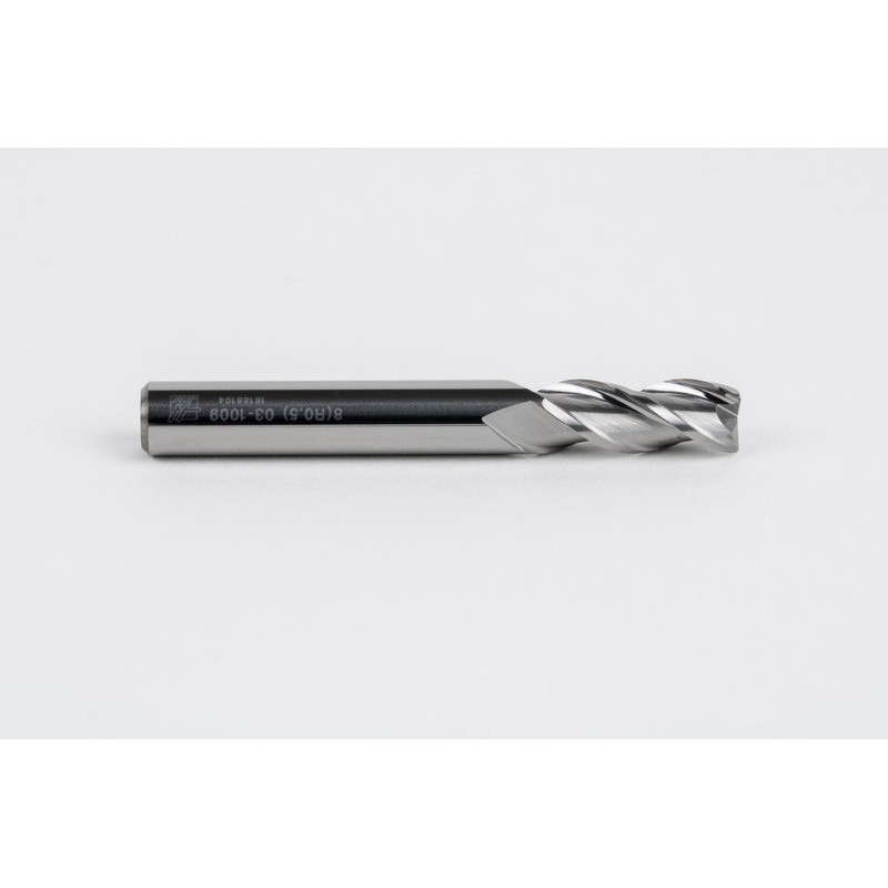 8mm Dia. Carbide End Mill, 3 Flute, Uncoated, 8mm Smooth Shank x 20mm LOC, 0.5mm Radius, HSAM2