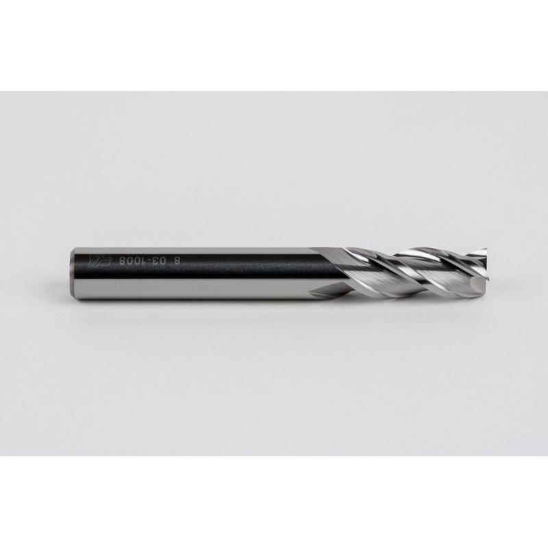 8mm Dia. Carbide End Mill, 3 Flute, Uncoated, 8mm Smooth Shank x 20mm LOC, Square Profile, HSAM2