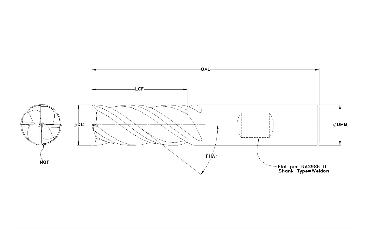 8mm Dia. Carbide End Mill, 4 Flute, Hyb. AlCrN Coated, 8mm Smooth Shank x 16mm LOC, 0.2mm Chamfer, HTPM