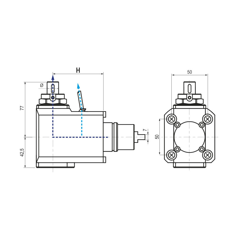 Biglia BMT40 Right Angle Driven Tool 16mm Spigot External Coolant, 1 to 1 Ratio, H45 (Gerardi)