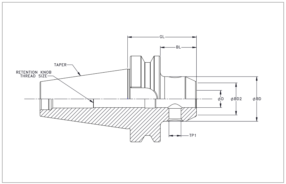 BT50 20mm End Mill Holder x 80mm Gage Length, TSC