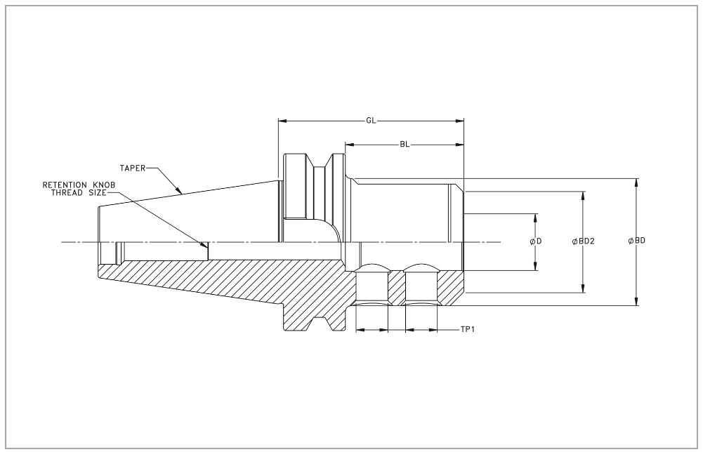 BT50 32mm End Mill Holder x 105mm Gage Length, TSC