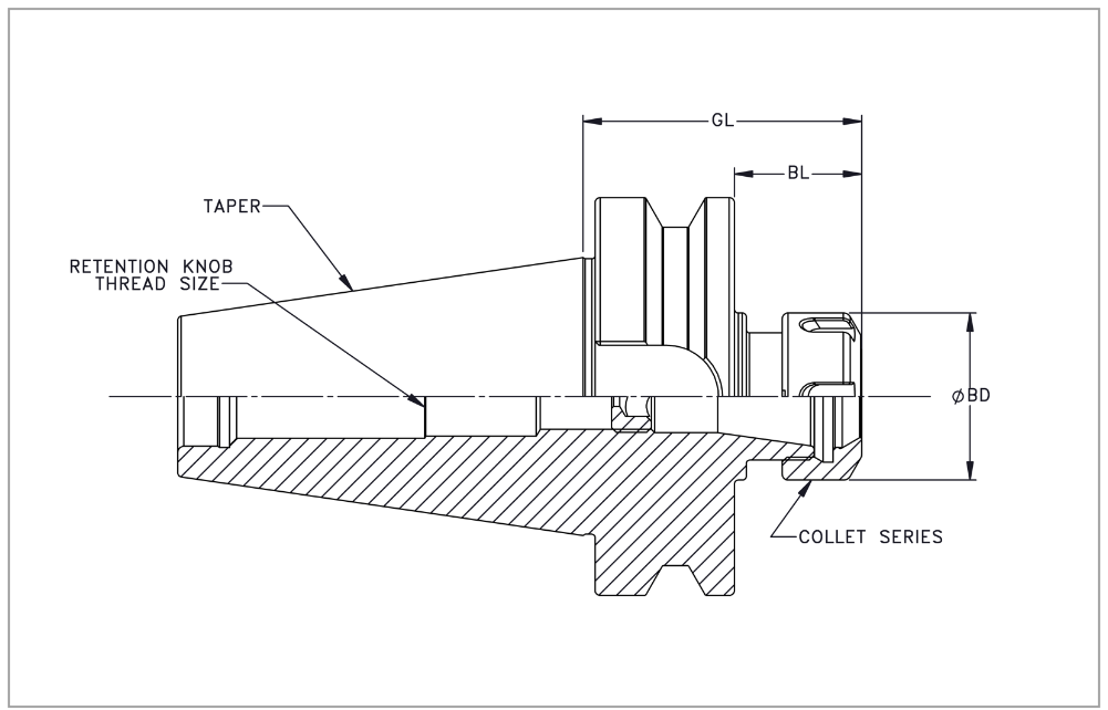 BT50 ER25 Collet Chuck x 70mm Gage Length, TSC