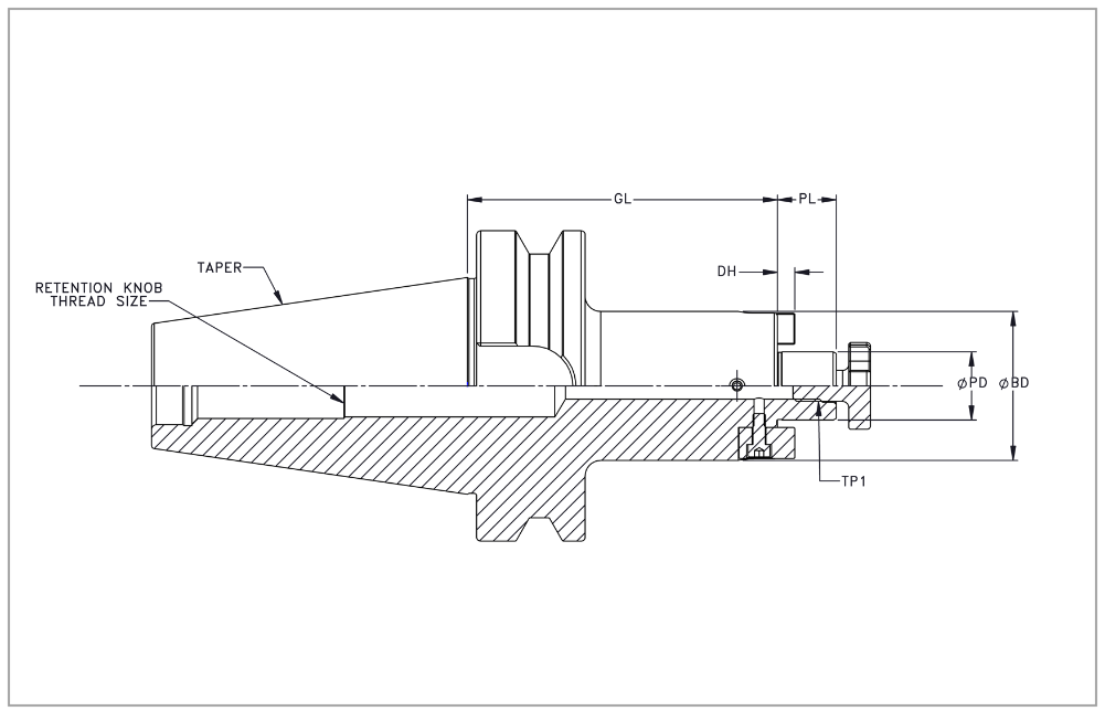 BT50 Shell Mill Holder, 22mm Pilot Diameter x 100mm Gage Length, TSC