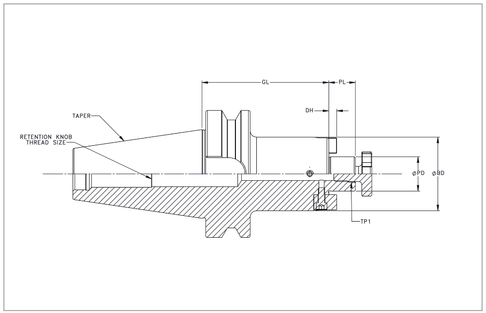 BT50 Shell Mill Holder, 27mm Pilot Diameter x 100mm Gage Length, TSC