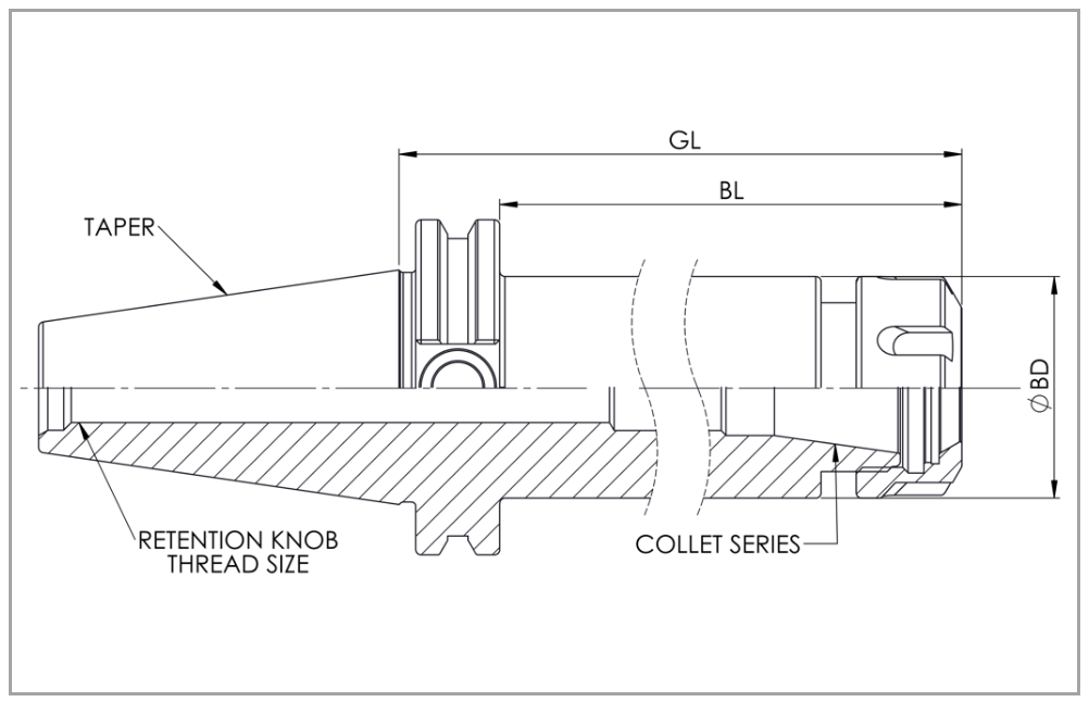 CT40 ER20 Collet Chuck x 8" Gage Length, TSC