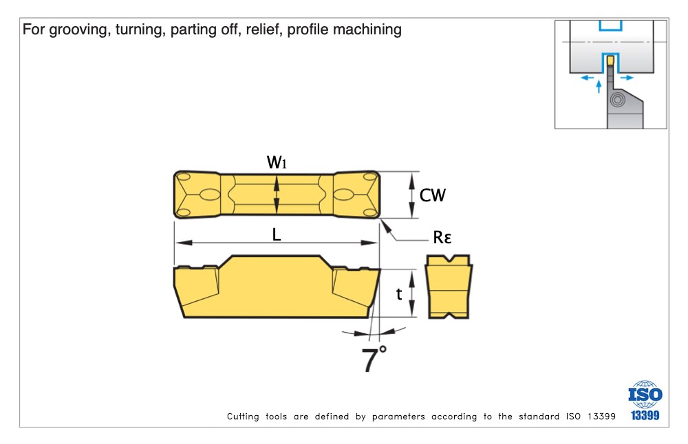 HCI-4R, 4mm Carbide Cut-Off Insert, Grade HU30 - Pack of 10