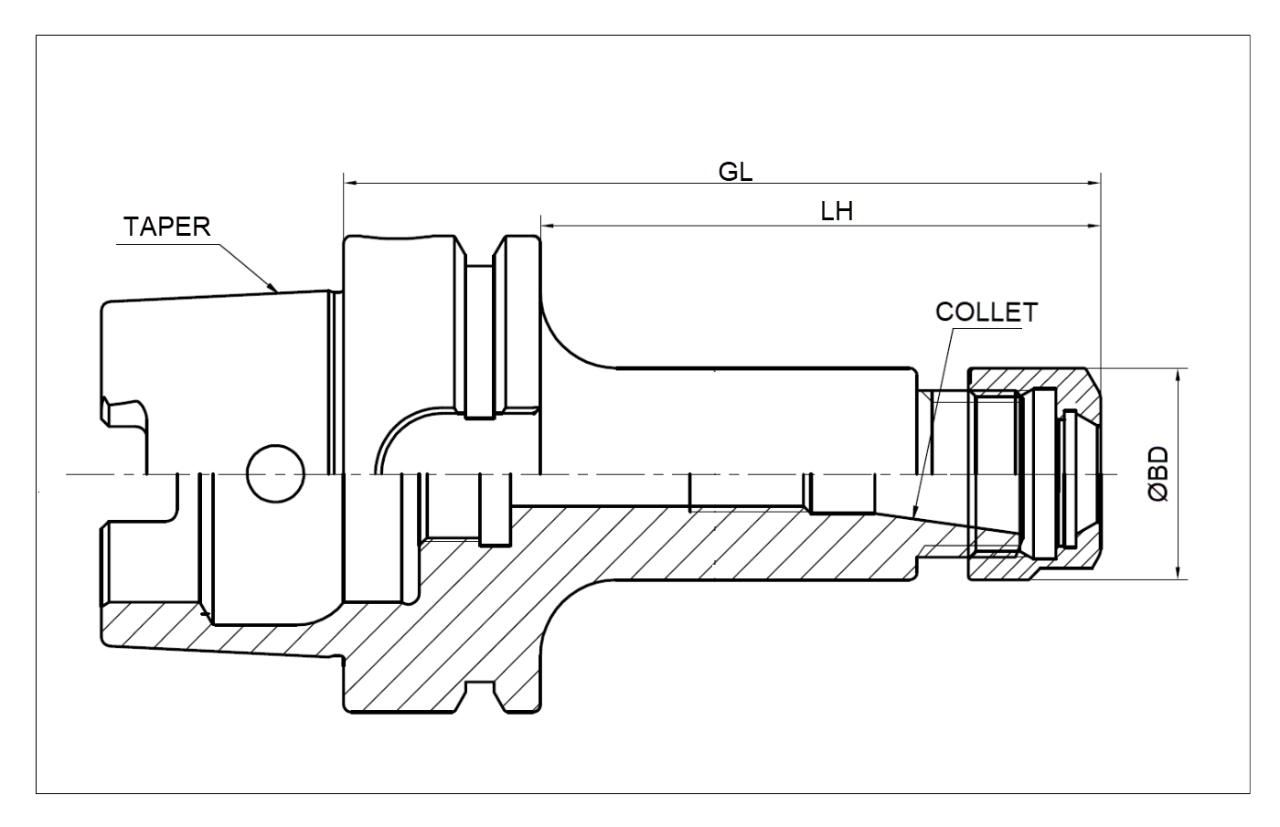 HSK63A ER16 Collet Chuck x 100mm Gage Length, TSC