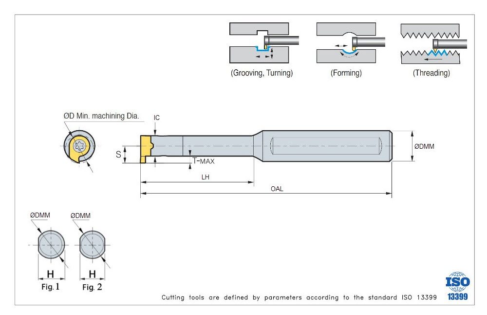 HSTG16412C-4, 12mm Ø Carbide Shank Small Internal (ID) Grooving/Threading Bar, Insert Size 6, Through-Tool Coolant
