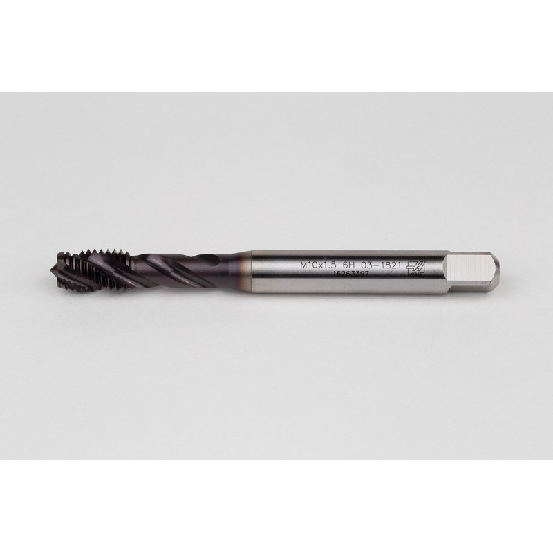 M10x1.5 M HSS-PM Spiral Flute Tap, 10mm Shank x 15mm Thread Length, 2.5XD, Mod. Bottoming, 3 Flute, 6H, TiAlN Coated