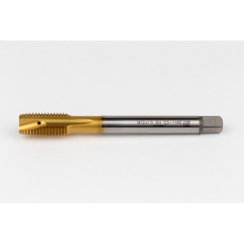 M12x1.5 MF HSS-E Spiral Point Tap, 9mm Shank x 22mm Thread Length, 3XD, Plug, 3 Flute, 6H, TiN Coated