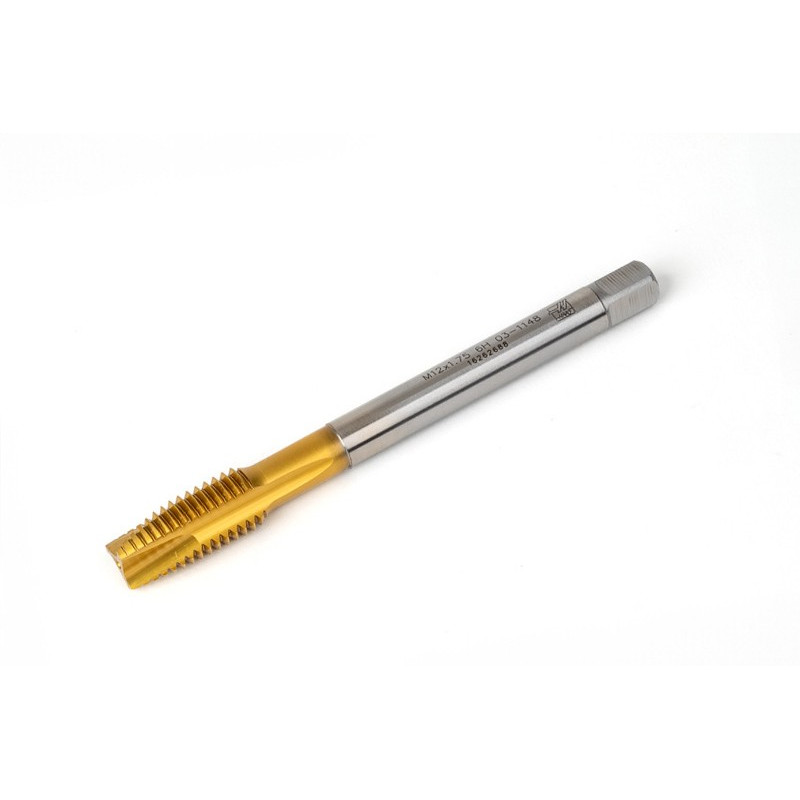 M12x1.75 M HSS-E Spiral Point Tap, 9mm Shank x 24mm Thread Length, 3XD, Plug, 3 Flute, 6H, TiN Coated