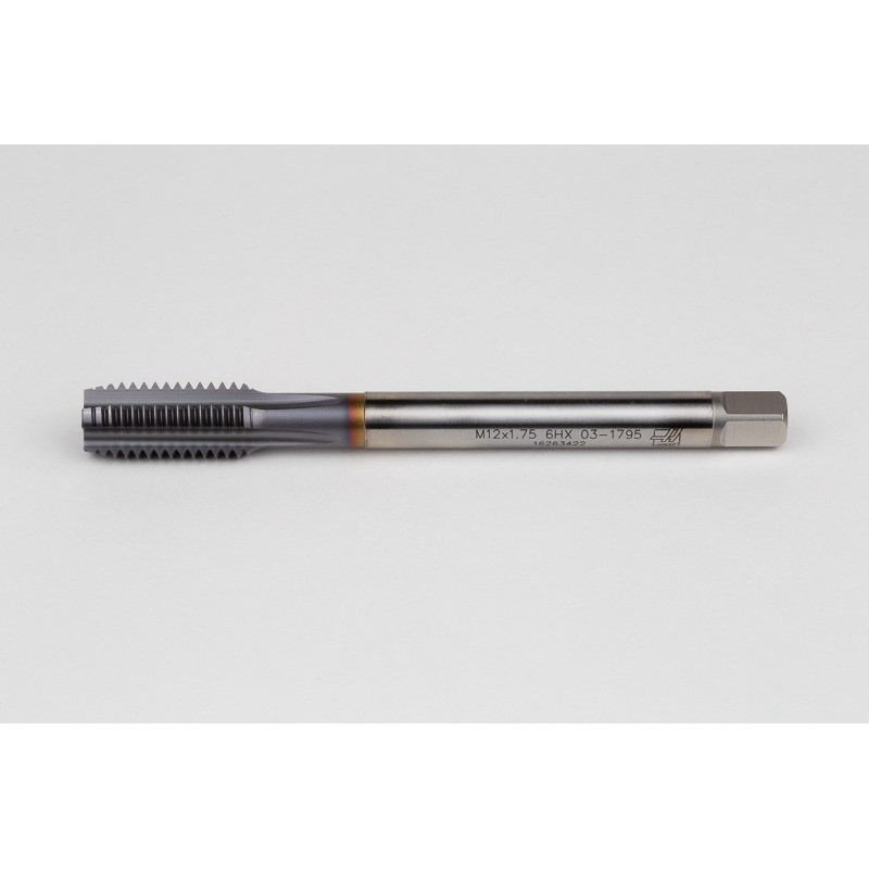 M12x1.75 M HSS-E Straight Flute Tap, 9mm Shank x 24mm Thread Length, 2XD, Mod. Bottoming, 4 Flute, 6HX, TiCN Coated