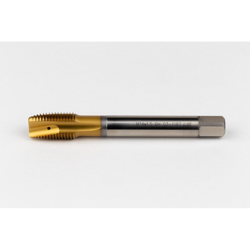 M14x1.5 MF HSS-E Spiral Point Tap, 11mm Shank x 22mm Thread Length, 3XD, Plug, 3 Flute, 6H, TiN Coated