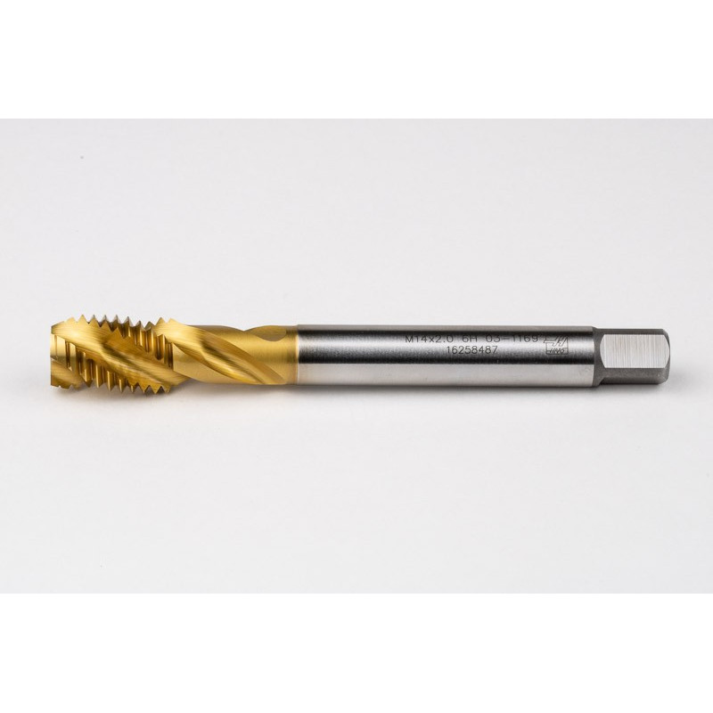 M14x2.0 M HSS-E Spiral Flute Tap, 11mm Shank x 20mm Thread Length, 2.5XD, Mod. Bottoming, 3 Flute, 6H, TiN Coated
