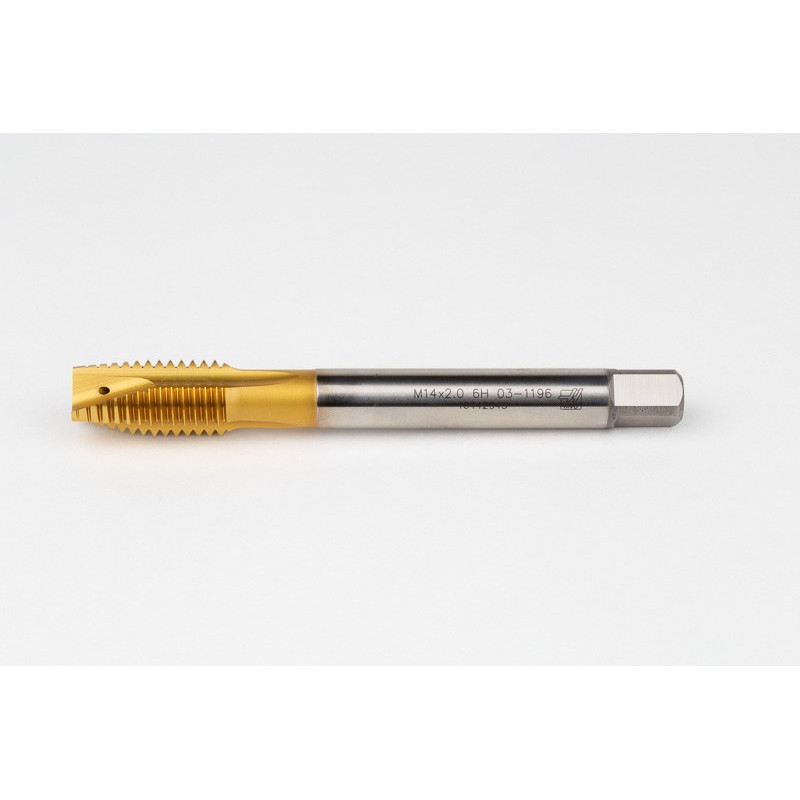 M14x2.0 M HSS-E Spiral Point Tap, 11mm Shank x 26mm Thread Length, 3XD, Plug, 3 Flute, 6H, TiN Coated