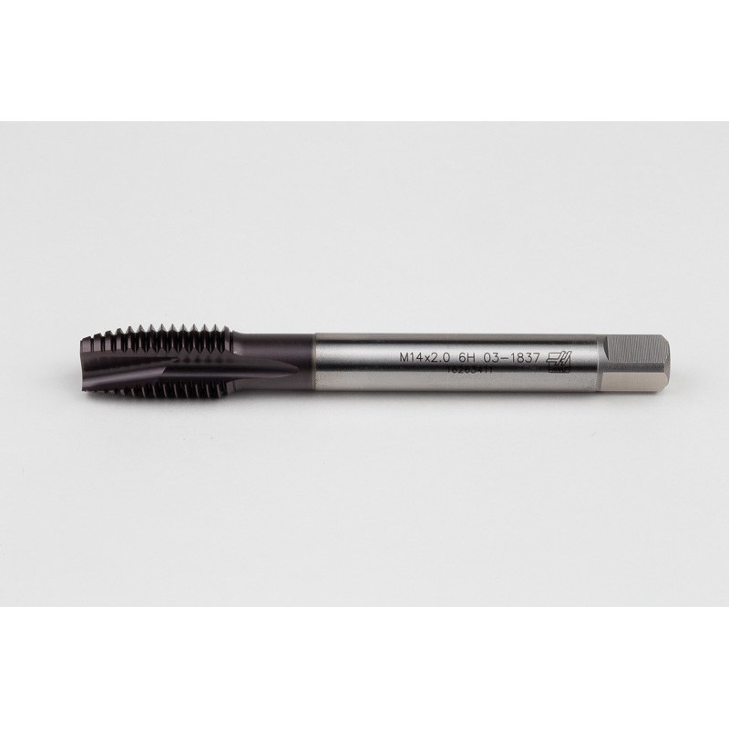 M14x2.0 M HSS-PM Spiral Point Tap, 11mm Shank x 26mm Thread Length, 3XD, Plug, 3 Flute, 6H, TiAlN Coated