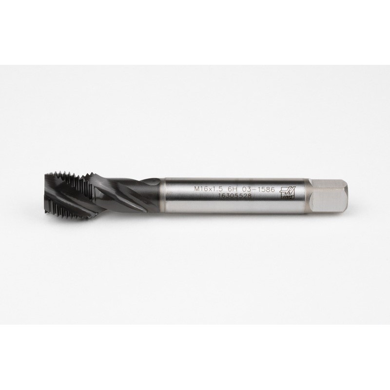 M16x1.5 MF HSS-E Spiral Flute Tap, 12mm Shank x 15mm Thread Length, 2.5XD, Mod. Bottoming, 3 Flute, 6HX, Hardslick Coated