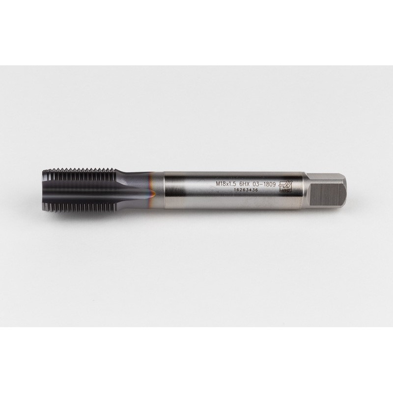M18x1.5 MF HSS-E Straight Flute Tap, 14mm Shank x 25mm Thread Length, 2XD, Mod. Bottoming, 4 Flute, 6HX, TiCN Coated