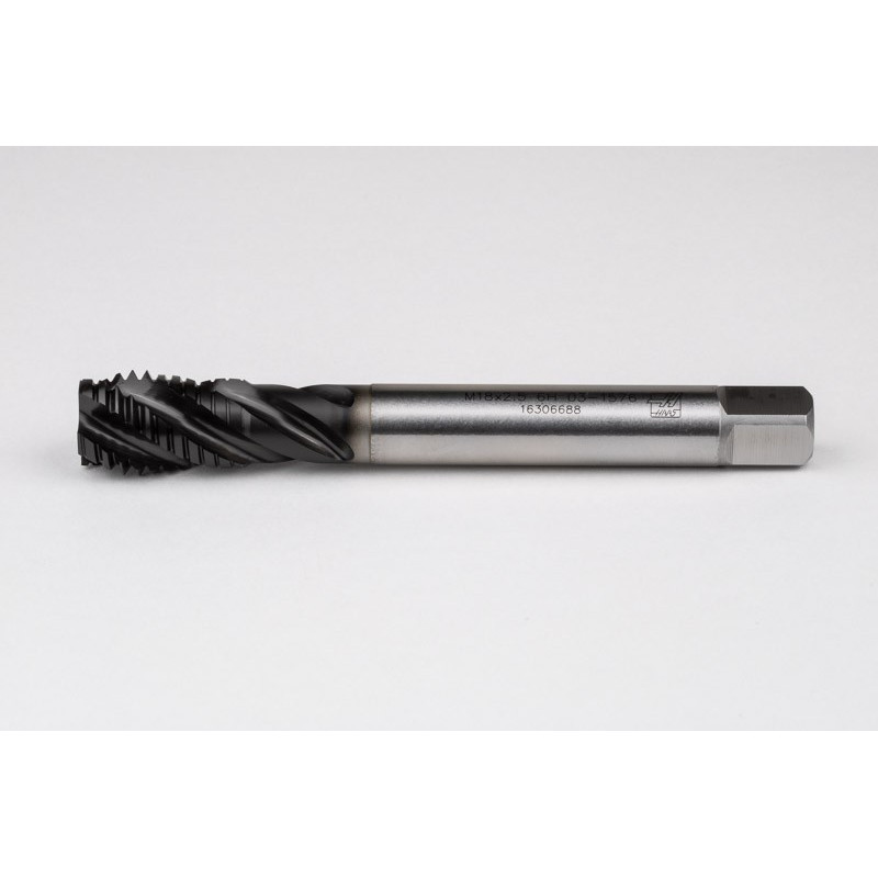 M18x2.5 M HSS-E Spiral Flute Tap, 14mm Shank x 25mm Thread Length, 2.5XD, Mod. Bottoming, 4 Flute, 6H, Hardslick Coated