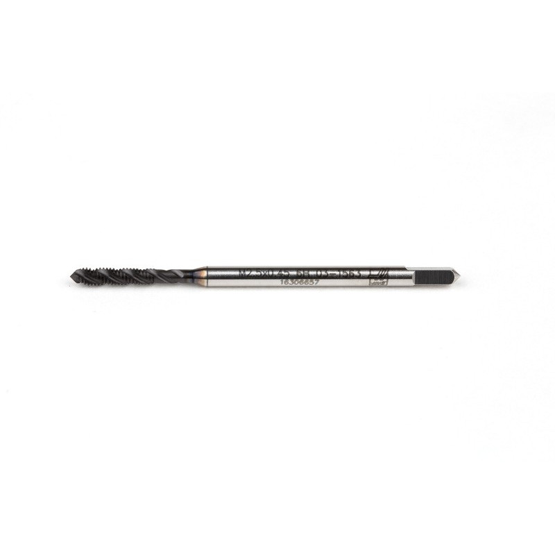 M2.5x0.45 M HSS-E Spiral Flute Tap, 2.8mm Shank x 9mm Thread Length, 2.5XD, Mod. Bottoming, 3 Flute, 6H, Hardslick Coated
