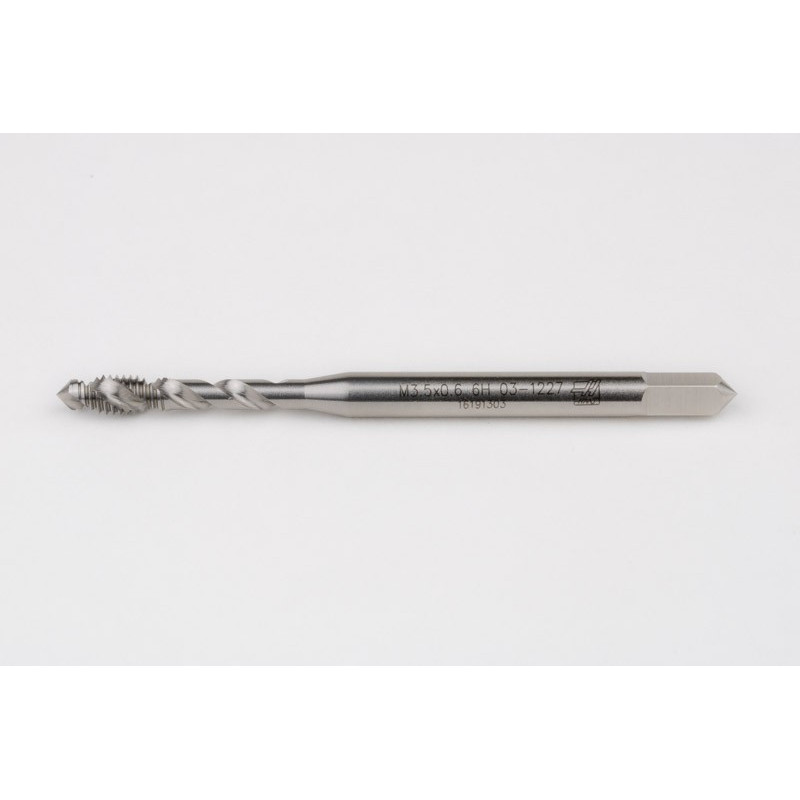 M3.5x0.6 M HSS-E Spiral Flute Tap, 4mm Shank x 7mm Thread Length, 2.5XD, Mod. Bottoming, 2 Flute, 6H, Uncoated