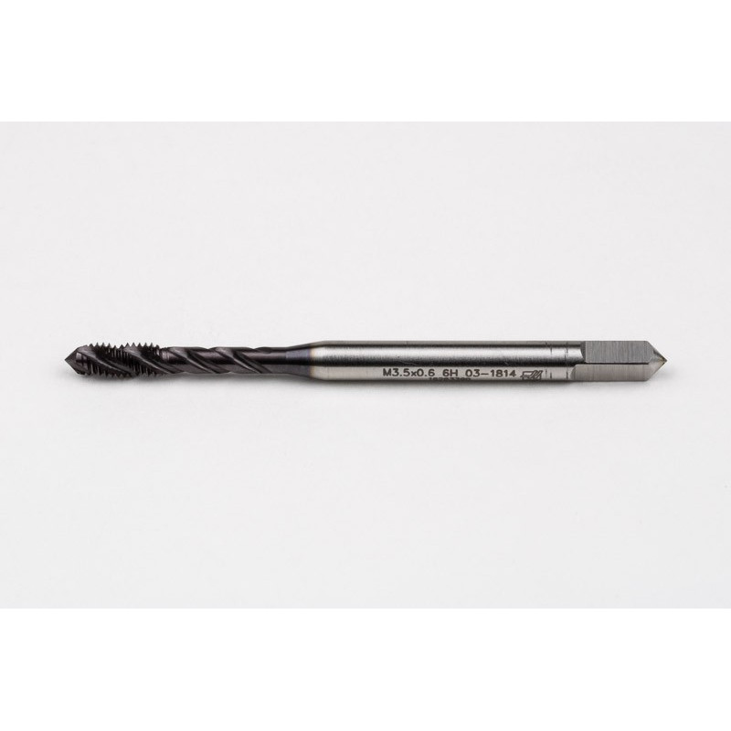 M3.5x0.6 M HSS-PM Spiral Flute Tap, 4mm Shank x 7mm Thread Length, 2.5XD, Mod. Bottoming, 3 Flute, 6H, TiAlN Coated