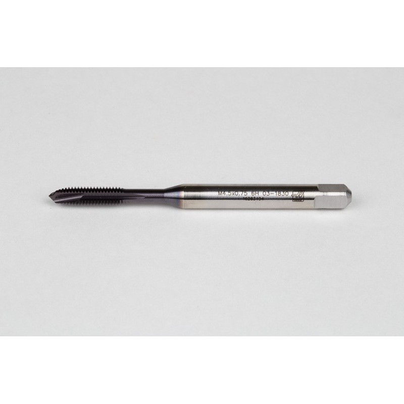 M4.5x0.75 M HSS-PM Spiral Point Tap, 6mm Shank x 14mm Thread Length, 3XD, Plug, 3 Flute, 6H, TiAlN Coated