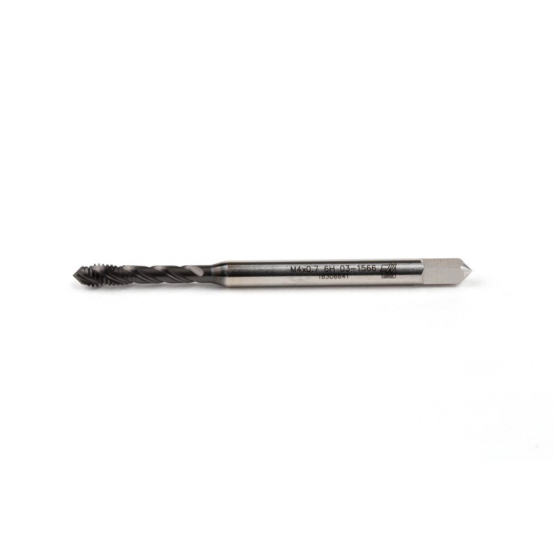 M4x0.7 M HSS-E Spiral Flute Tap, 4.5mm Shank x 7mm Thread Length, 2.5XD, Mod. Bottoming, 3 Flute, 6H, Hardslick Coated