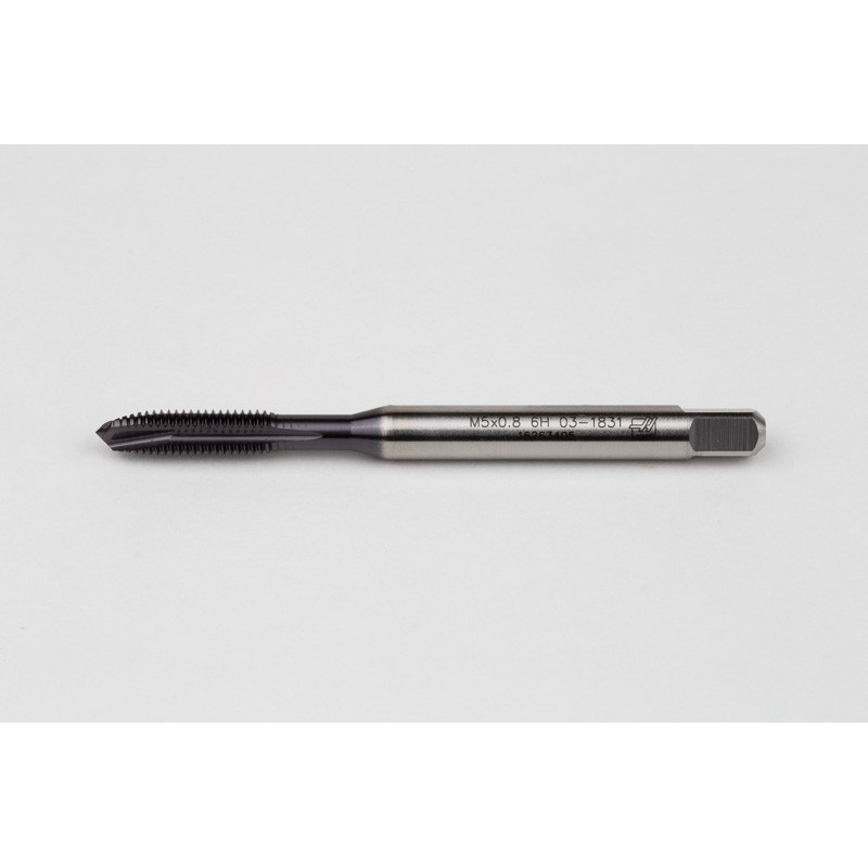 M5x0.8 M HSS-PM Spiral Point Tap, 6mm Shank x 15mm Thread Length, 3XD, Plug, 3 Flute, 6H, TiAlN Coated