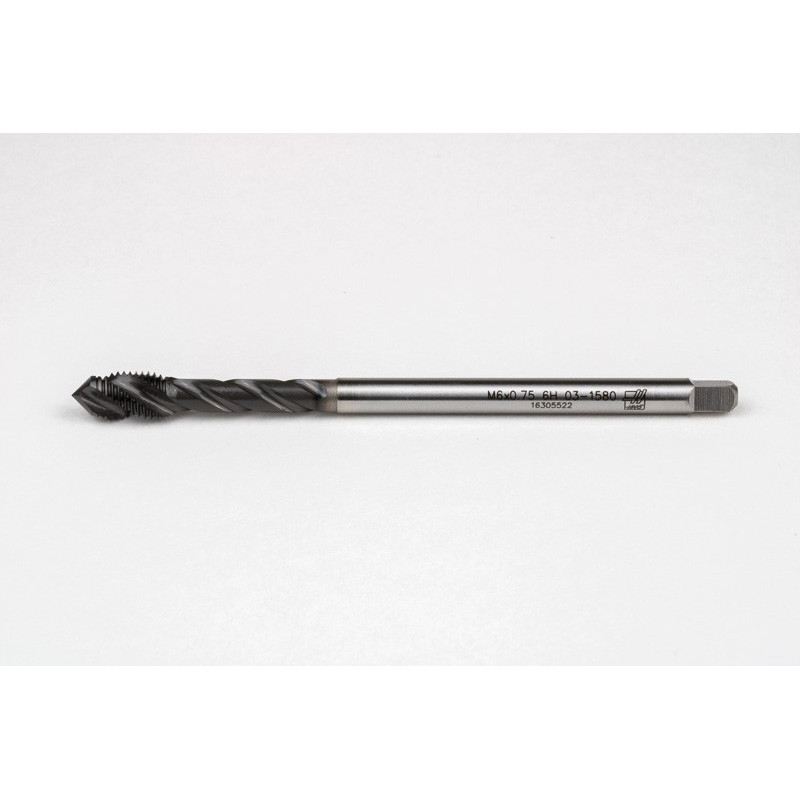 M6x0.75 MF HSS-E Spiral Flute Tap, 4.5mm Shank x 8mm Thread Length, 2.5XD, Mod. Bottoming, 3 Flute, 6HX, Hardslick Coated